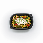 • Features perfectly grilled chicken. Paired with a belly-friendly vegetable bruschetta and house-made gluten-free elbow pasta salad.