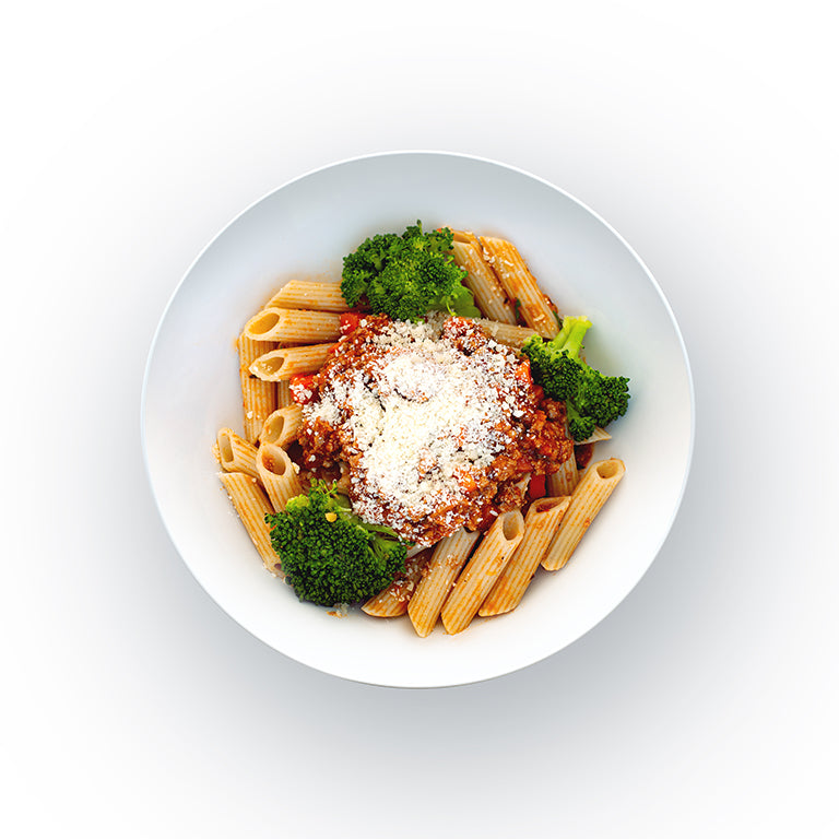 - Features slow-simmered ground Colorado lamb. Simmered with chopped carrots, tomatoes, garlic-infused olive oil, and fresh herbs and spices, the lamb is then paired with gluten-free penne pasta and steamed broccoli.