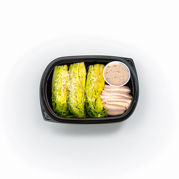 - High-quality ingredients with your choice of protein. Made with crisp baby romaine hearts, Parmesan cheese, and your choice of chicken breast, shrimp, or salmon for a customizable meal.